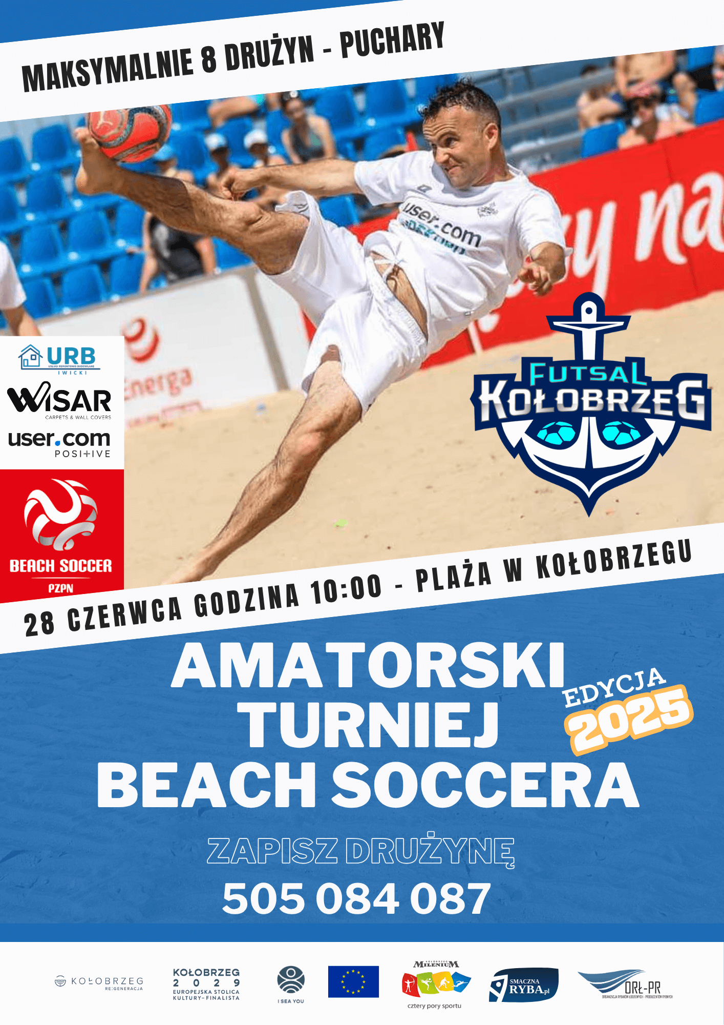 | Opis: | W sobotę 28 czerwca 2025 r. odbędzie się Amatorski Turniej Beach Soccera edycja 2025. Początek gier od godziny 10:00 – weryfikacja od godziny 9:30.